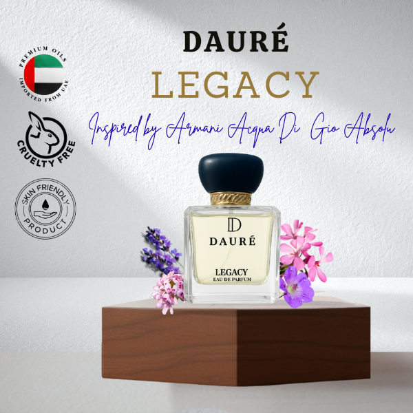 Dauré LEGACY is a fragrance for the man who commands presence without saying a word. Inspired by Acqua Di Gio Absolu, this scent is a masterful blend of nature and intensity—balancing freshness, spice, and wood in perfect harmony.